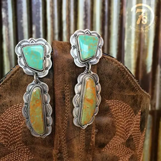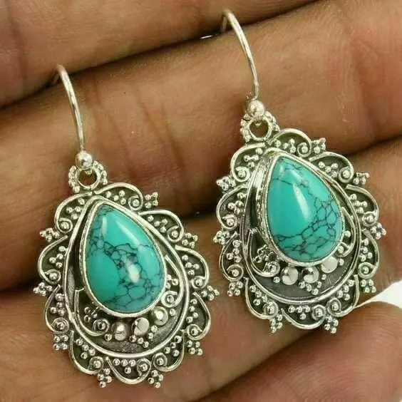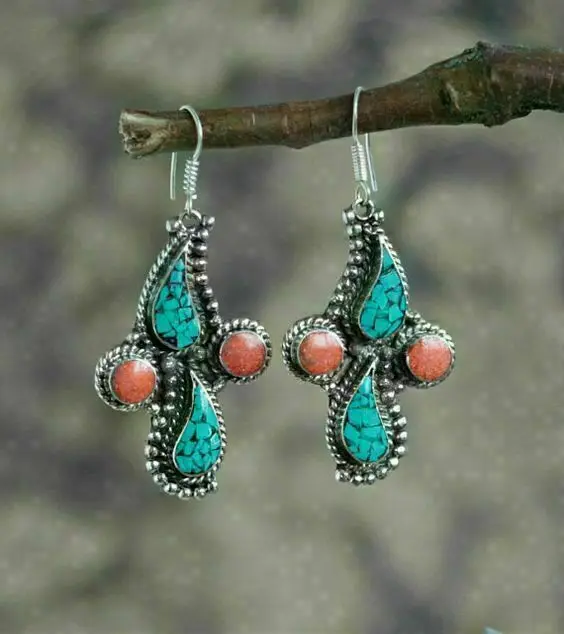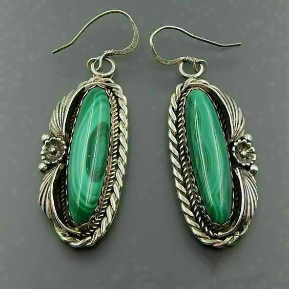 Classic Hippie Jewelry Vintage Green Resin Dangle Earrings for Women Bohemian