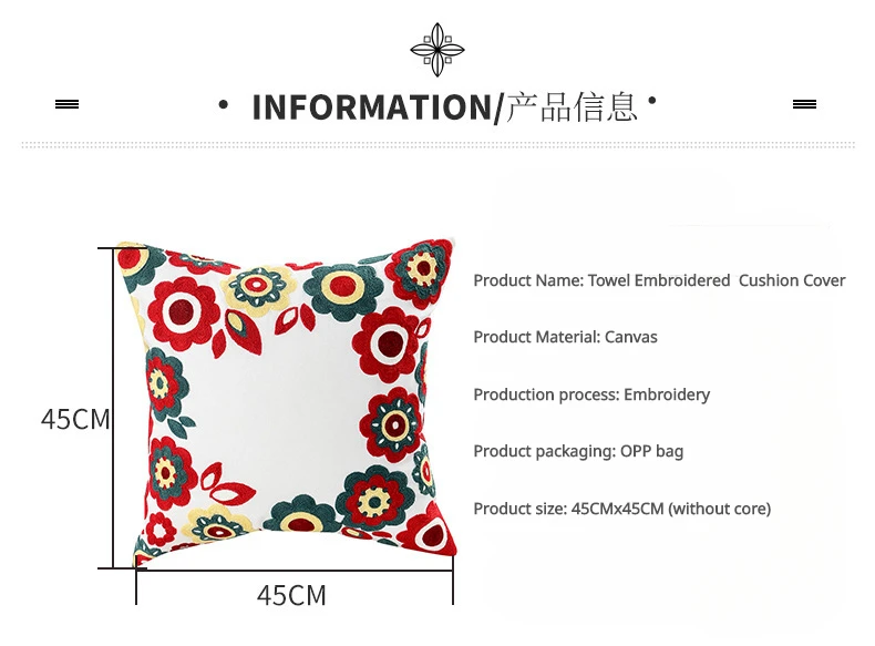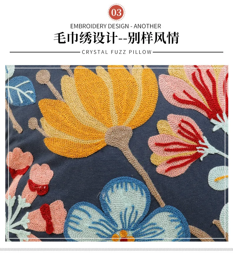 Embroidered Cushion Cover Plant Flower Embroidery, Home Decor