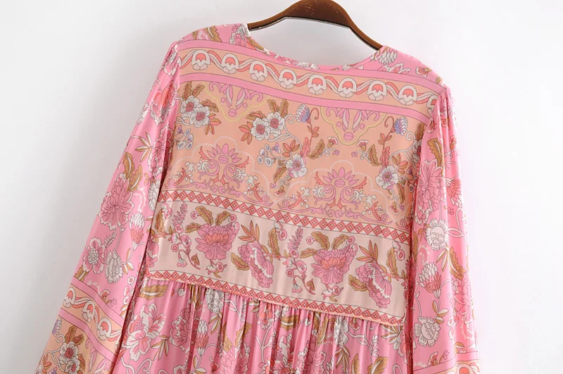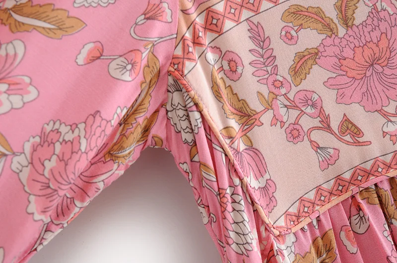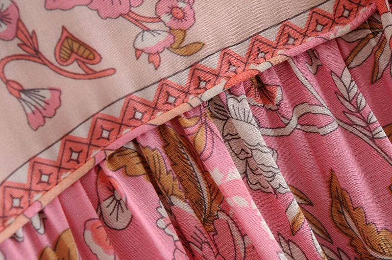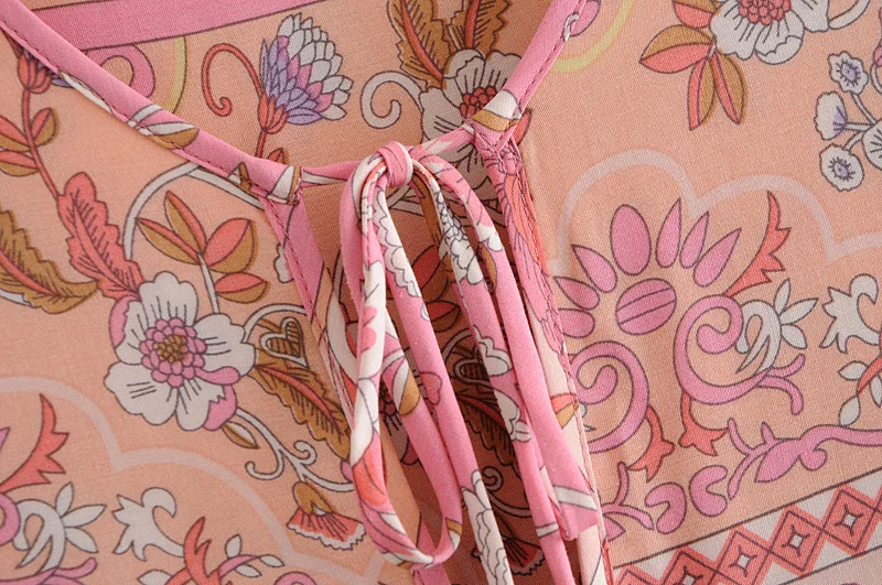 Hippie Women Neck Tie Floral Print Beach Bohemian Maxi Dresses