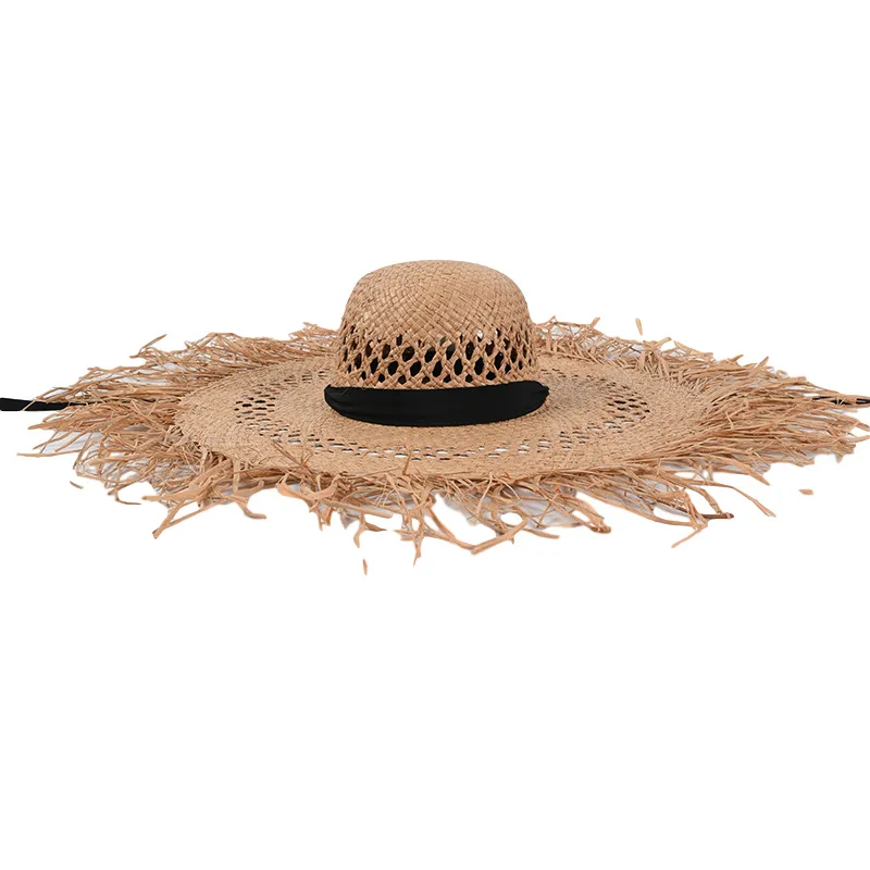Straw hat women summer Large eaves beach vacation photo sunscreen straw hat personality European style foldable beach hat